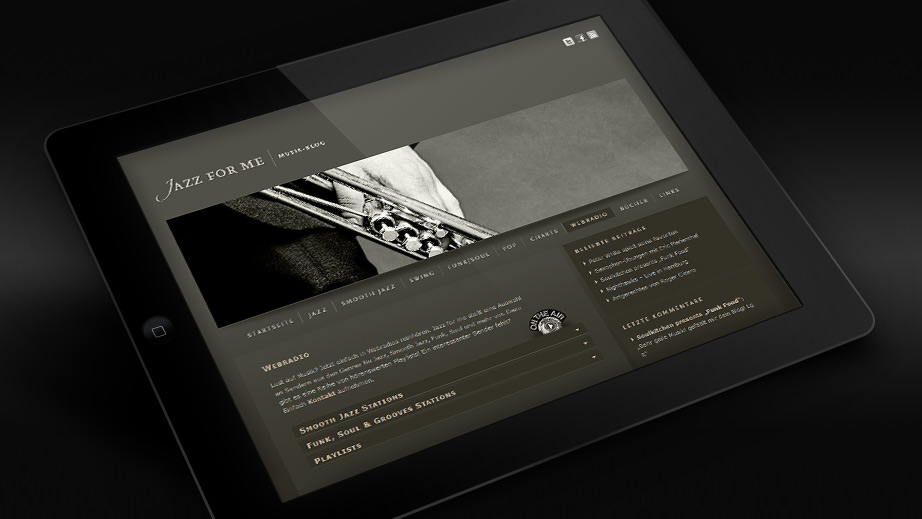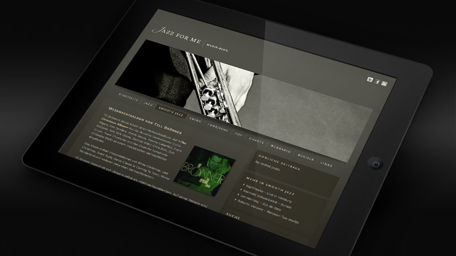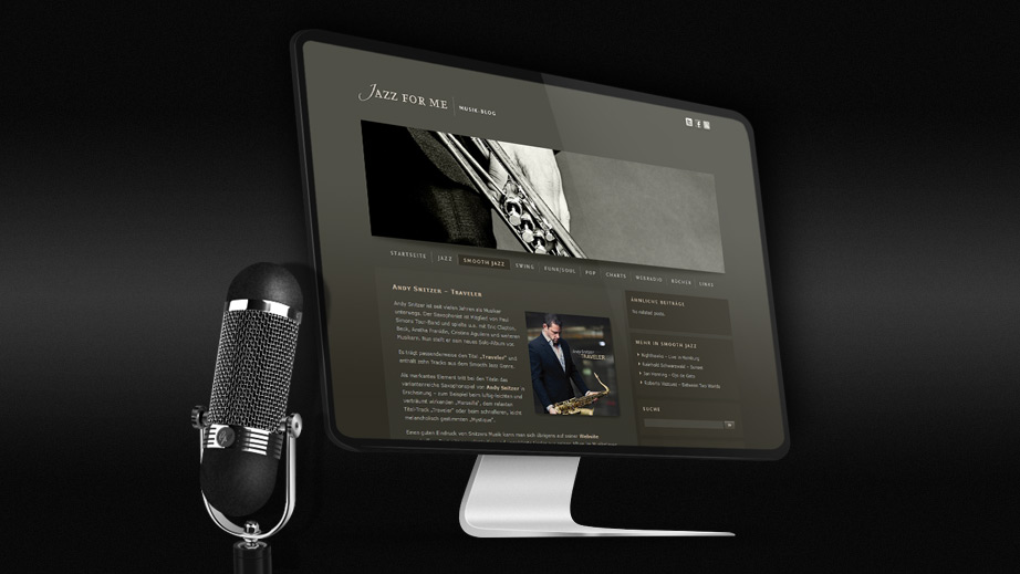 Das Musik-Blog für Jazz und mehr setzten wir mit WordPress als Content Management System um. Neben dem Blog gibt es Charts, Links, Webradios, Buch-Vorstellungen und mehr zu Jazz.