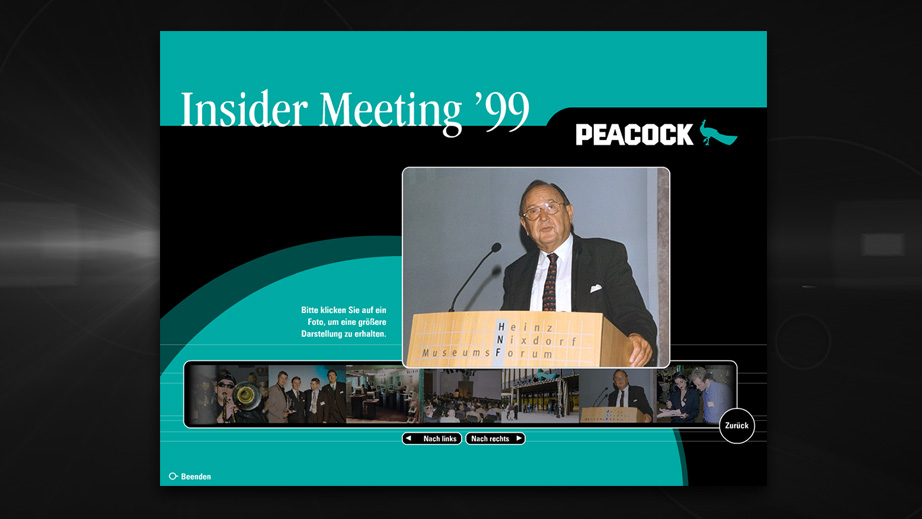 Das Insider Meeting der Peacock AG gehörte zu den Höhepunkten im Heinz Nixdorf Museumsforum, Paderborn. Peacock beauftragte uns mit der multimedialen Präsentation dieser Veranstaltung.